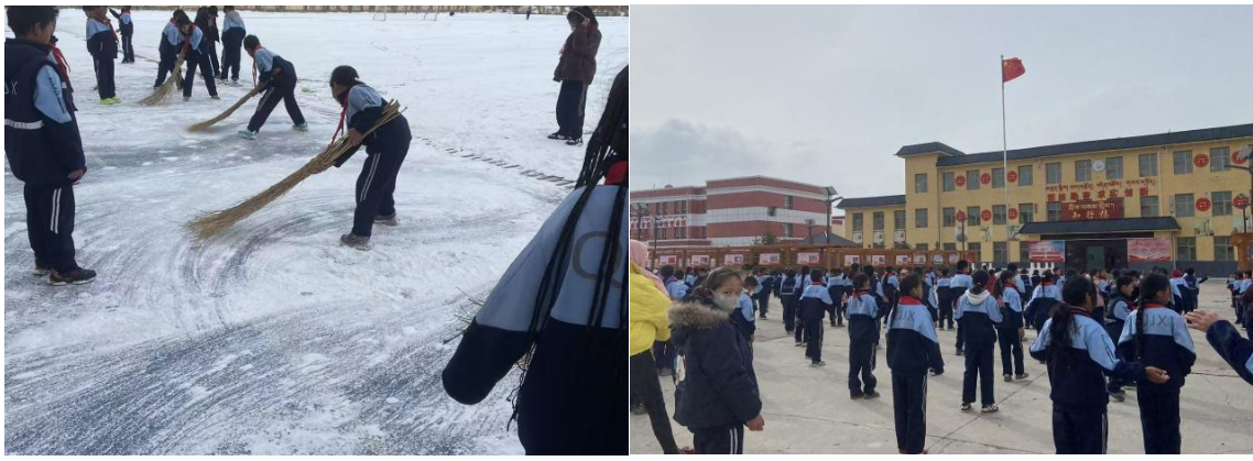 课间时分,我们积极参与学生管理,组织学生整齐列队、认真完成课间操,在规范日常行为的同时,也守护着孩子们的身心健康,培养他们的集体意识与纪律观念。面对校园扫雪等劳动任务,我们带领学生齐心协力清扫积雪,在寒风中共同劳动,既美化了校园环境,也让责任与担当的意识在实践中悄然生根。这些看似平常的校园日常,正是我们融入学生、以行育人的生动写照。